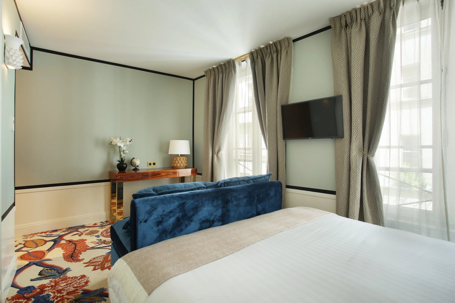 Imaginé par Laura Gonzalez, chaque appartement reflète son talent pour mêler harmonieusement tradition et modernité. Avec son regard à la fois audacieux et délicat, elle a créé un lieu chaleureux et élégant, où l’intime rencontre le contemporain — une parenthèse apaisante au cœur du rythme parisien.